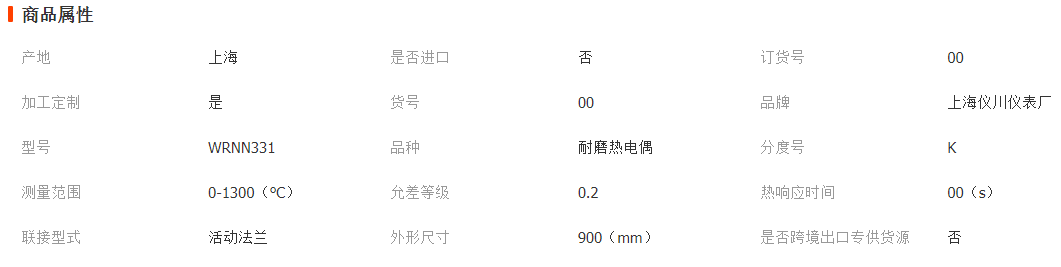 水泥廠耐磨熱電偶WRNN331 0-1200℃L=900MM WRNK131接口M33*2