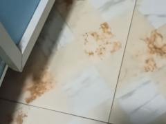 廚房地面瓷磚縫冒水,漏水點在大理石下面,老王憑經驗找到漏水點